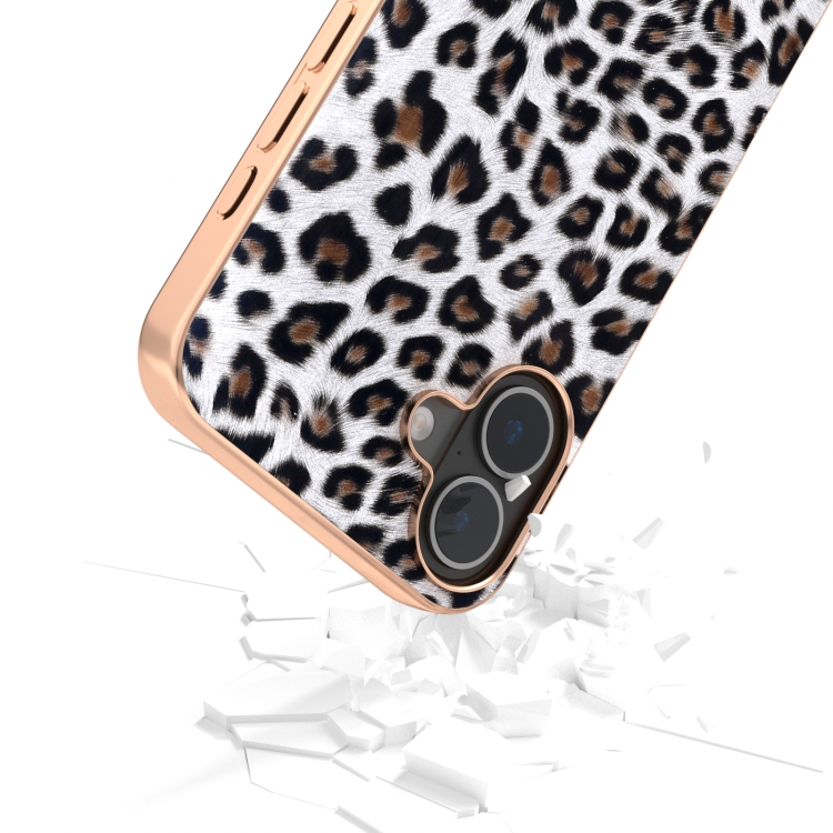 Funda para iPhone 16 Nanorrevestimiento Estampado de Leopardo (Plateada)