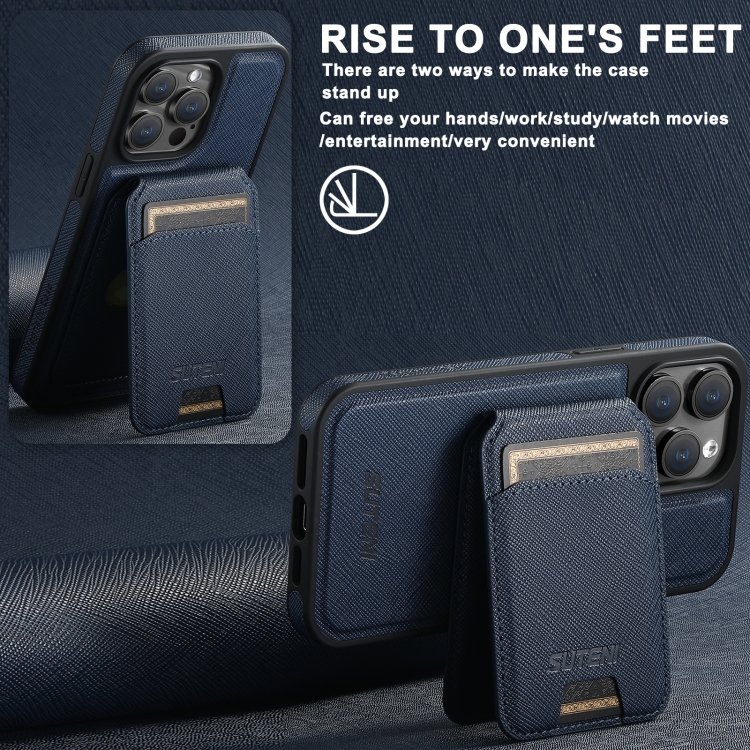 Funda para iPhone 16 Plus Suteni M2 Parte Trasera Tarjeta Vertical Magsafe (Azul)
