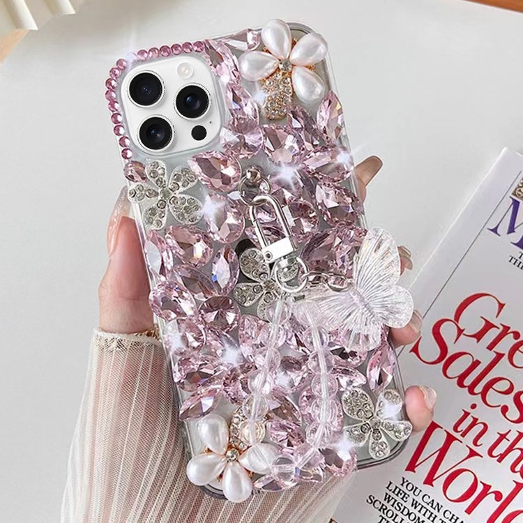 Funda para iPhone 16 Pro Hecha a Mano con Incrustaciones de Diamantes y Mariposas (Rosa)