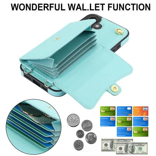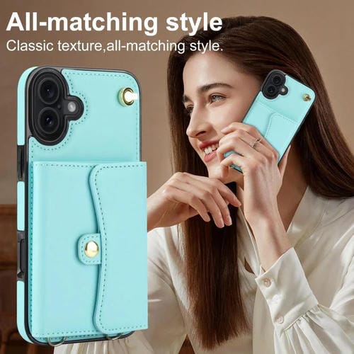 Funda para iPhone 17 con ranura para tarjeta RFID y cordón largo (verde menta)
