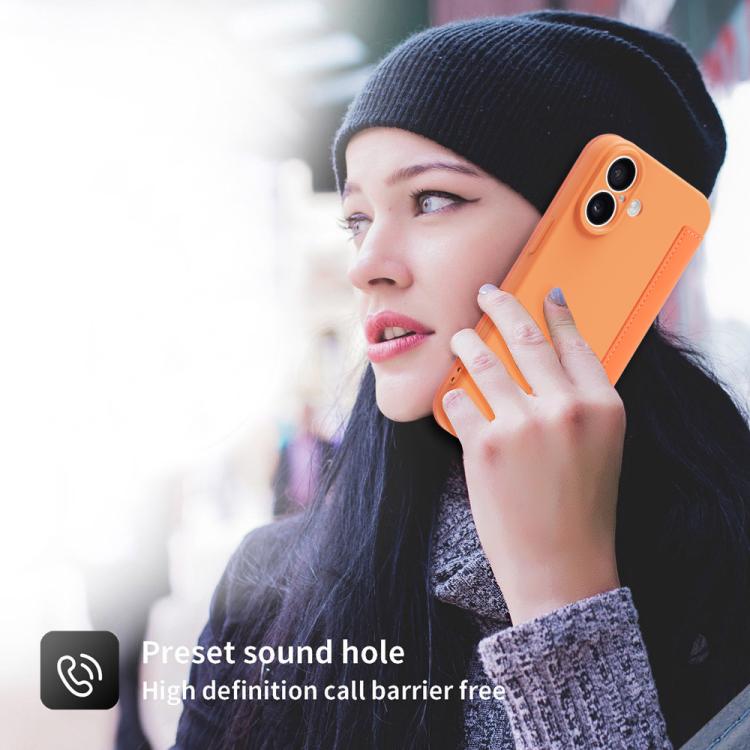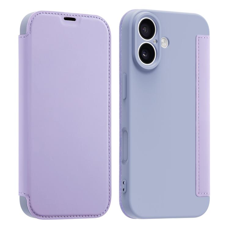 Funda para iPhone 17 con tacto de piel sintética tipo Liquid Skin y ranuras para tarjetas (morada)