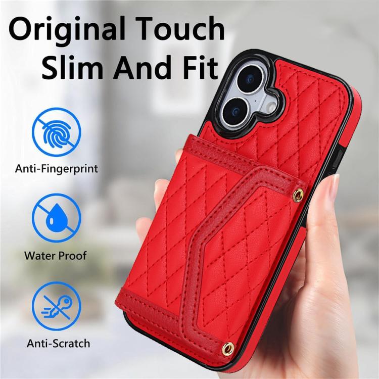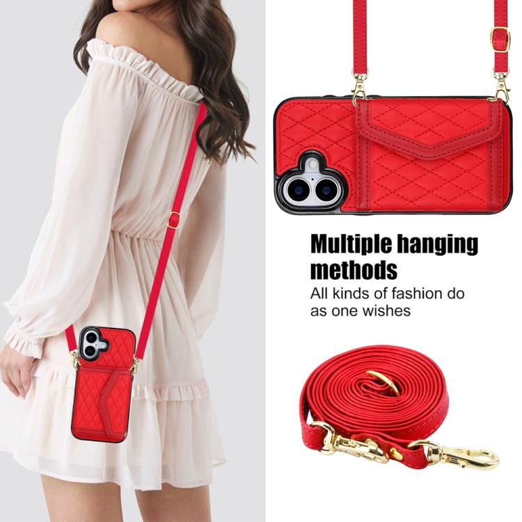 Funda para iPhone 17 con textura rómbica y cordón largo (roja)