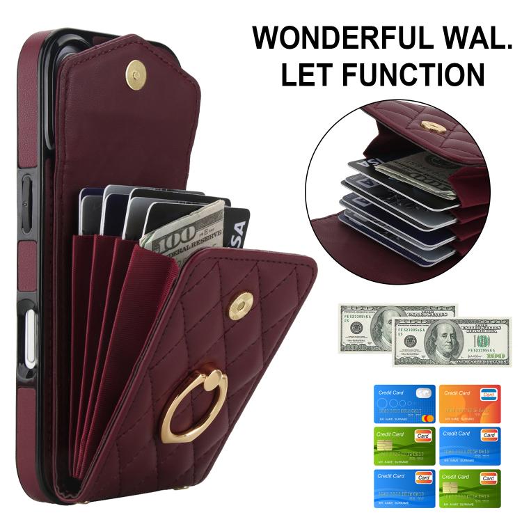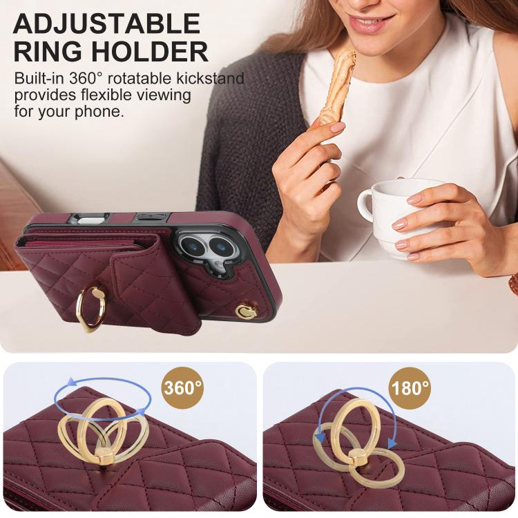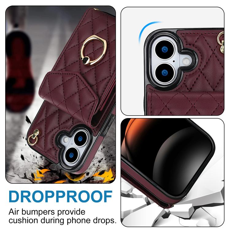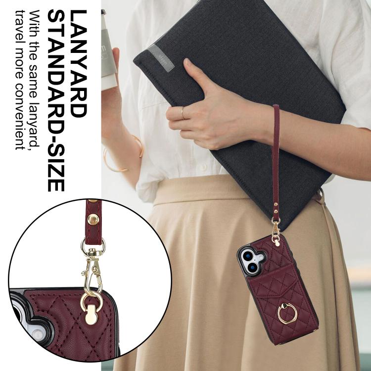 Funda para iPhone 17 con textura rómbica y cordón largo (rojo vino)
