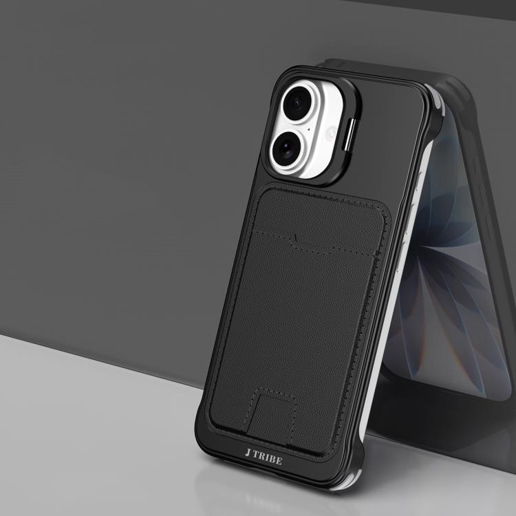 Funda para iPhone 17 J TRIBE de metal sin marco con ranura para tarjeta y soporte para lente (negra)