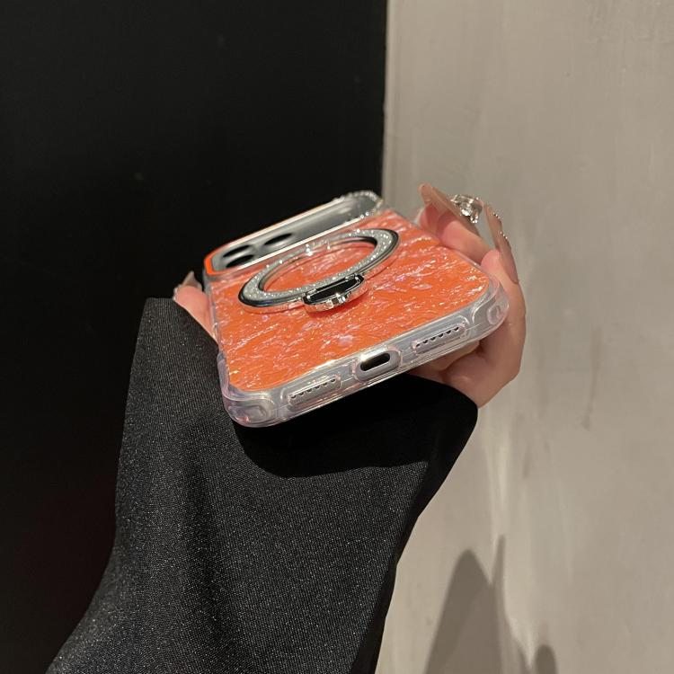 Funda para iPhone 17 Pro con carcasa dorada y colorida, diseño estampado en TPU+IMD, con soporte magnético brillante (rosa).