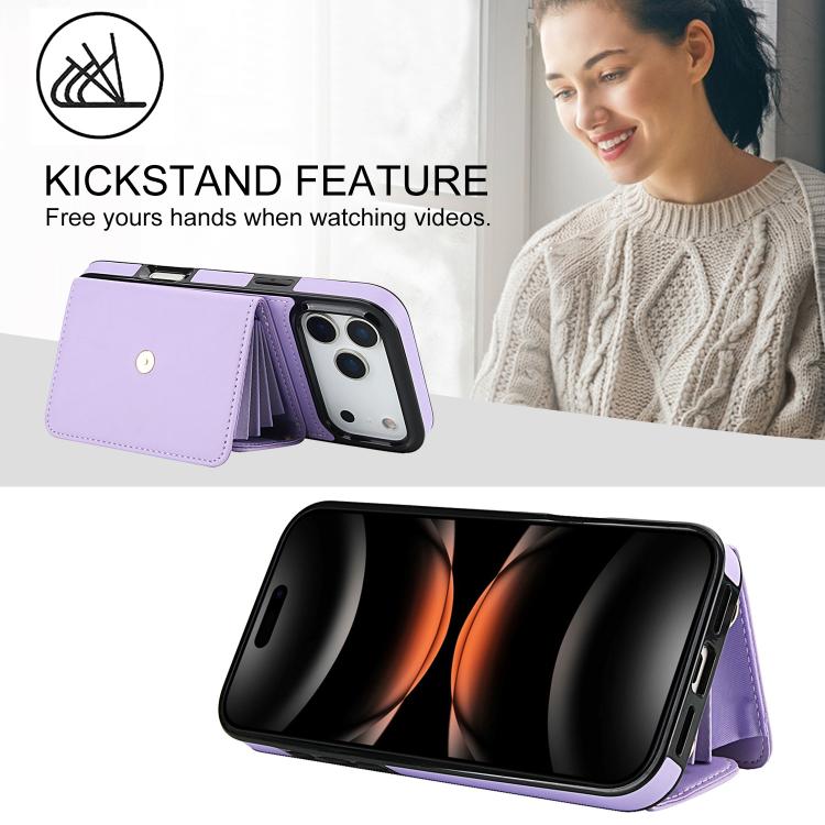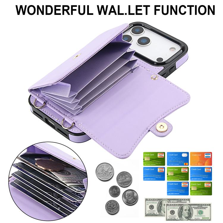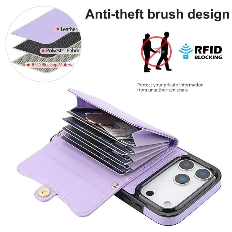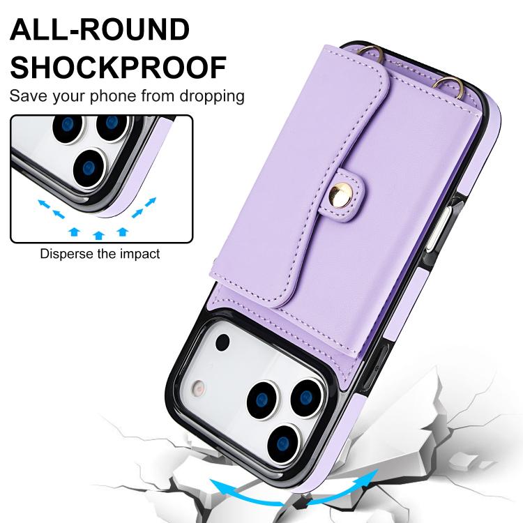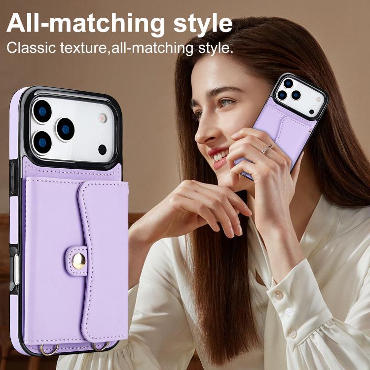 Funda para iPhone 17 Pro con ranura para tarjeta RFID y cordón largo (morado)