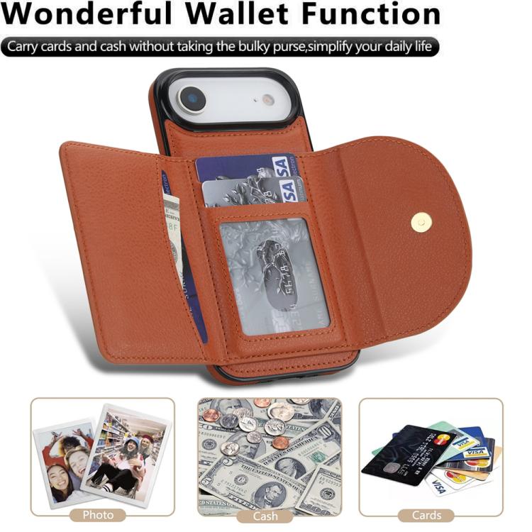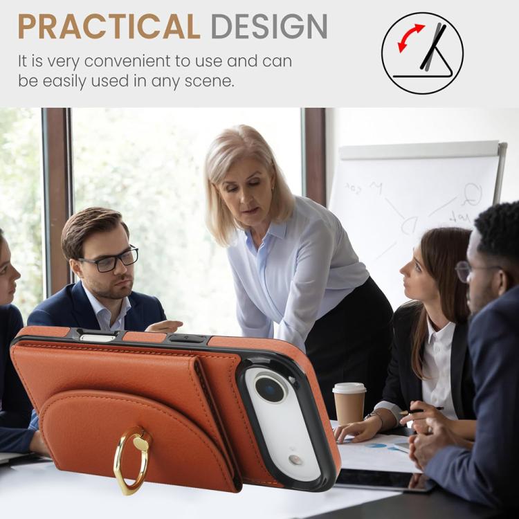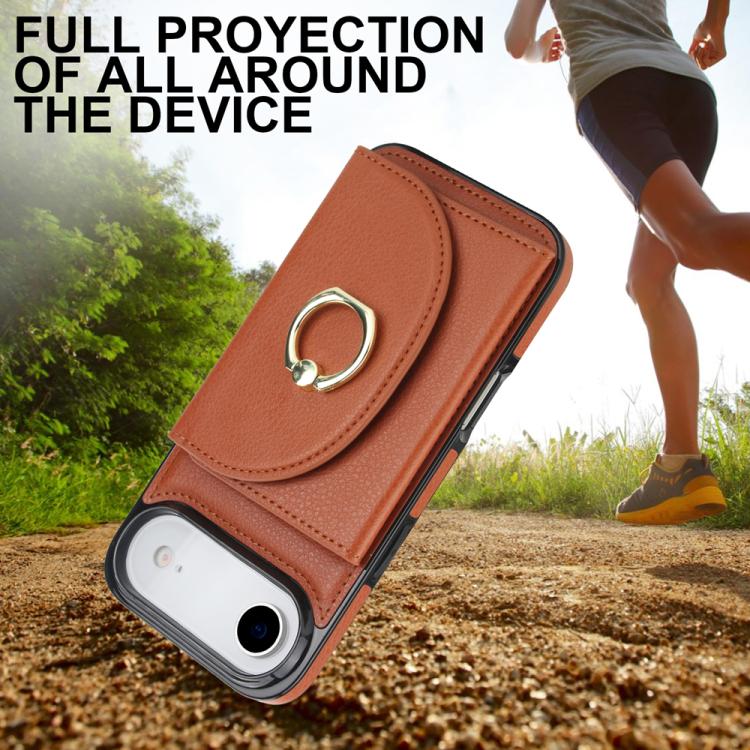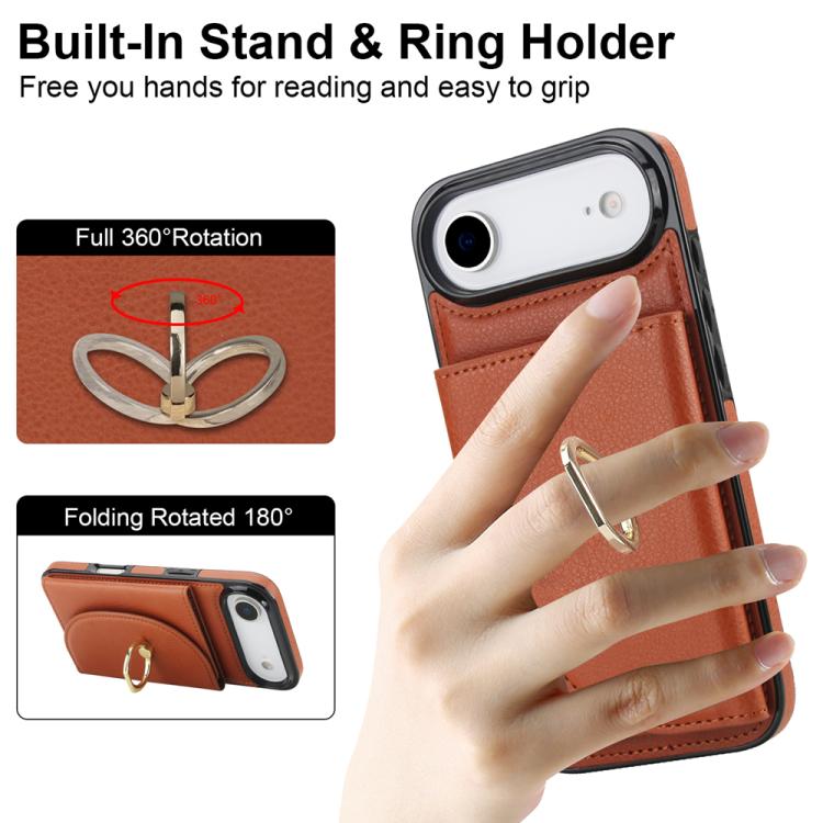 Funda para iPhone Air con tarjetero y anillo de piel sintética (marrón)