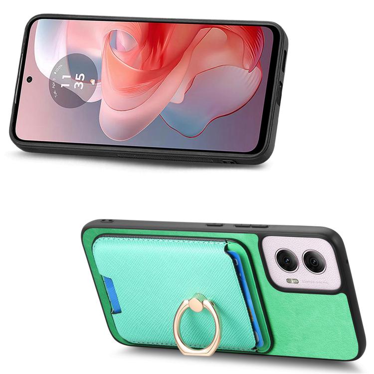 Funda para Motorola Moto G55 Retro Cross de Cuero con Anillo Vertical y Ranuras para Tarjetas Magsafe (Verde)
