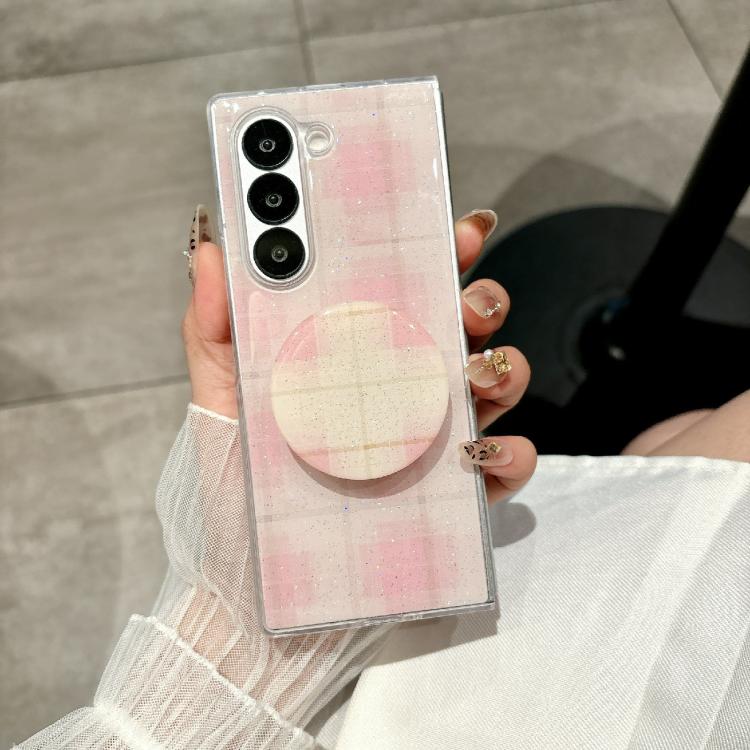 Funda para Samsung Galaxy Z Fold5 con diseño de puntos brillantes y soporte (rosa)