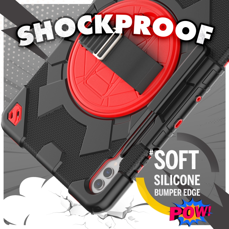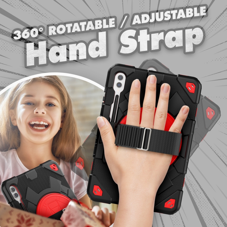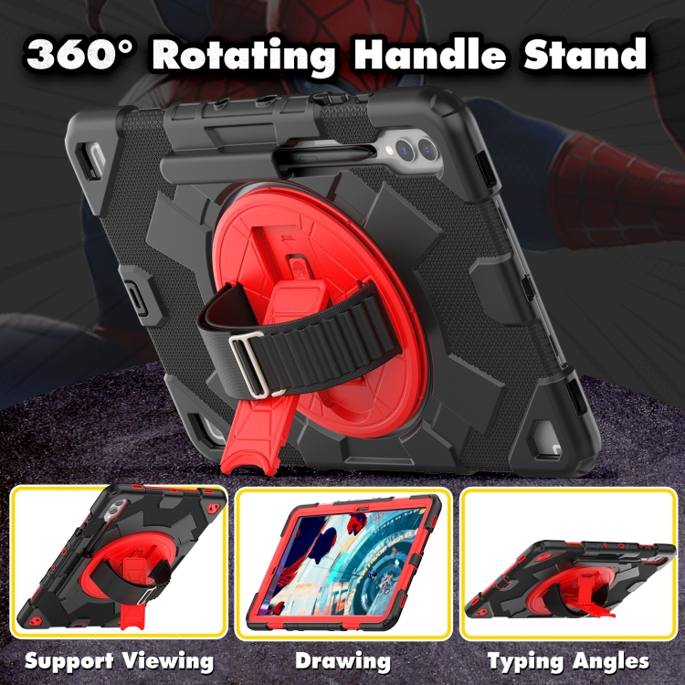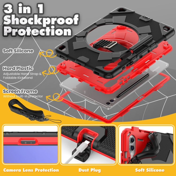 Funda para Tablet Spider con Soporte Giratorio y Agarre Manual para Samsung Galaxy Tab S10+ / S9+ / S9 Fe+ (Negra y Roja)