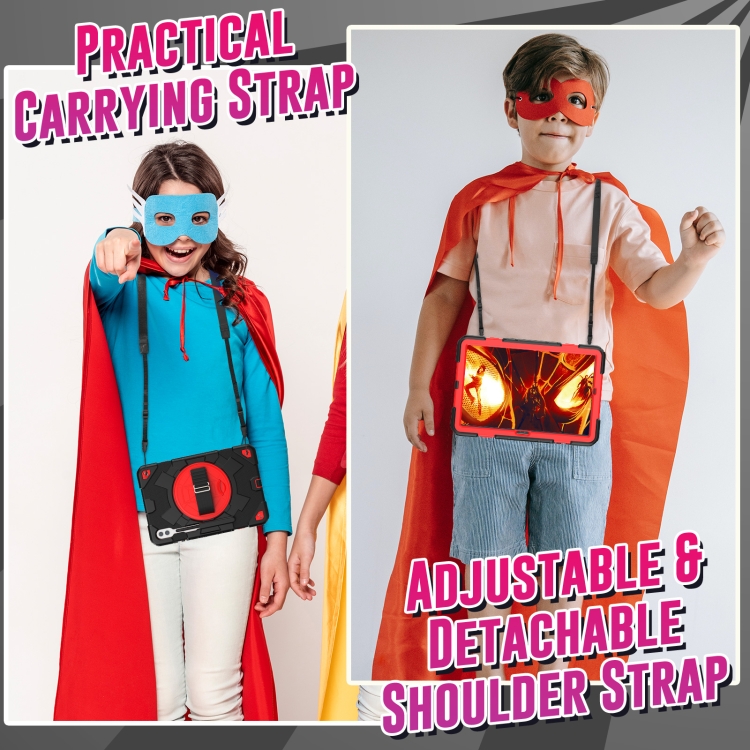 6. Correa de hombro desmontable: La correa de mano ajustable proporciona un agarre fácil y cómodo, una característica imprescindible cuando presentas tu tableta a otras personas.La correa de hombro desmontable y ajustable puede ayudarte a llevar tu tableta de forma más segura mientras haces senderismo, viajas y otras actividades al aire libre.Esto también se puede utilizar para asegurar tu tableta al asiento del coche.