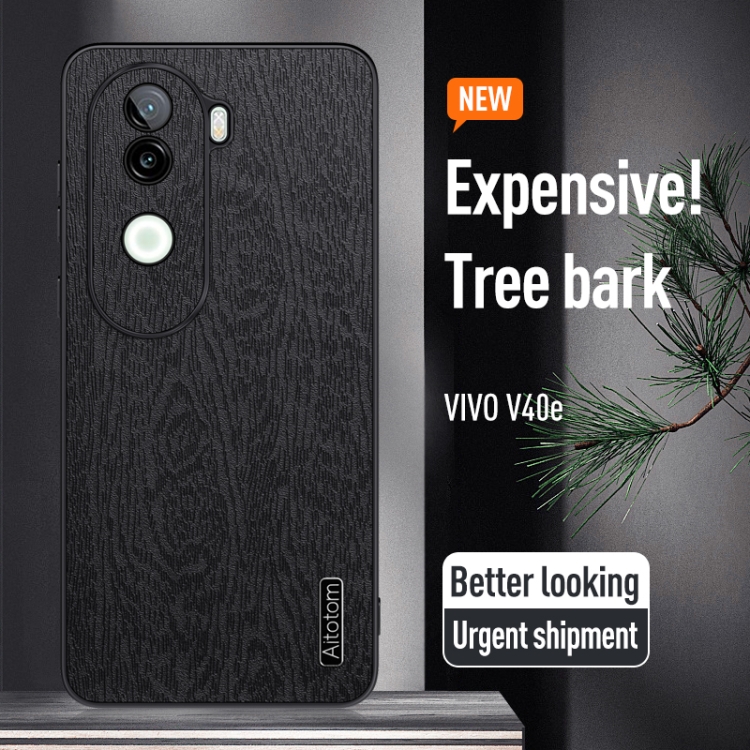 Funda de Cuero con Textura de Corteza de Árbol para Vivo V40E, a Prueba de Golpes (Gris)