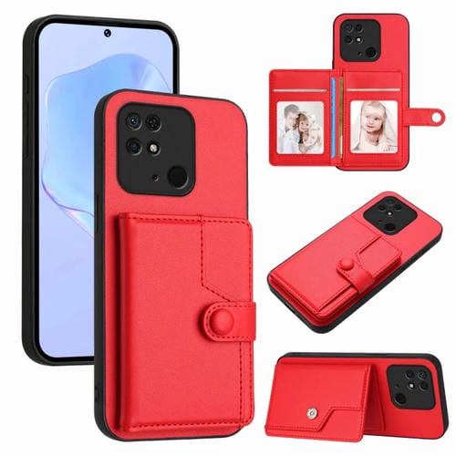 Funda para Teléfono Antirrobo con Botón y Tarjeta Rfid para Redmi 10C (Roja)