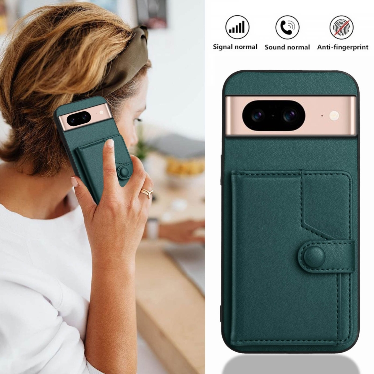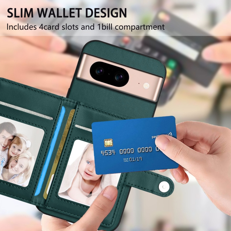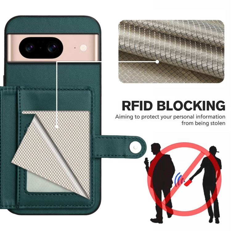 Funda Antirrobo para Google Pixel 8A con Botón y Tarjetero RFID (Verde)