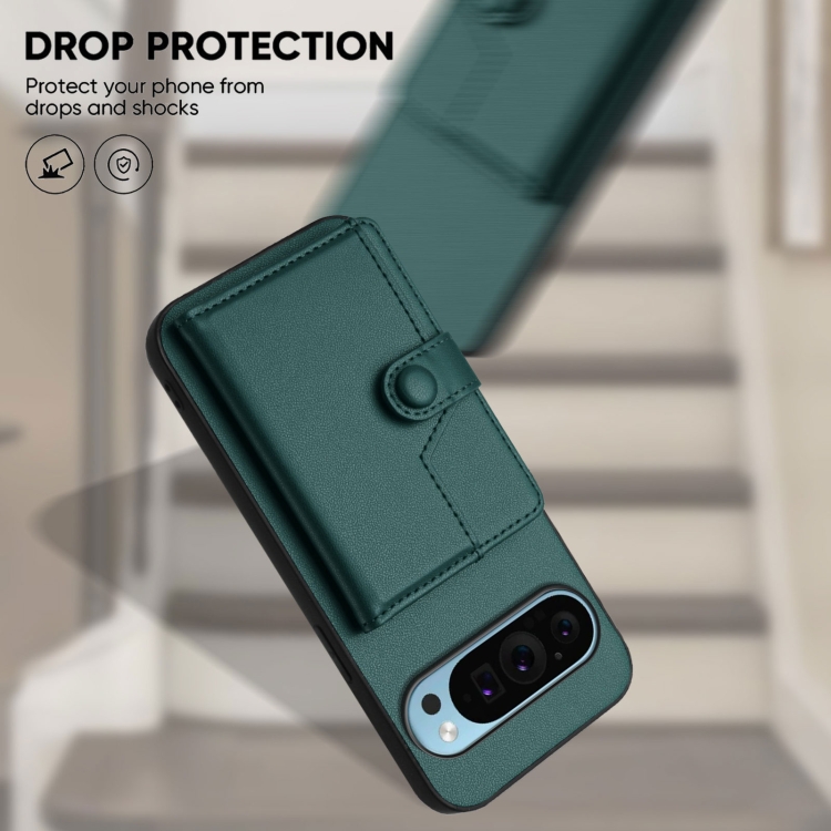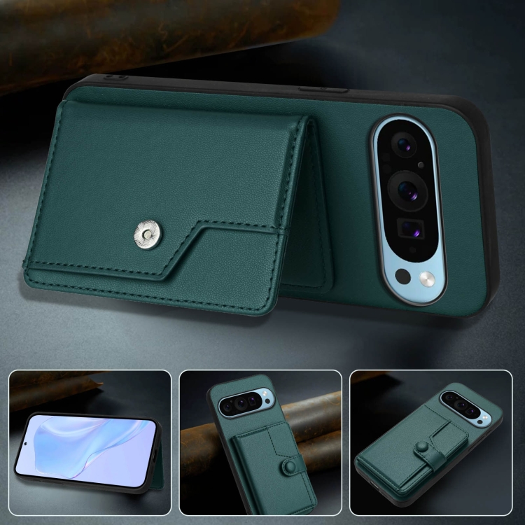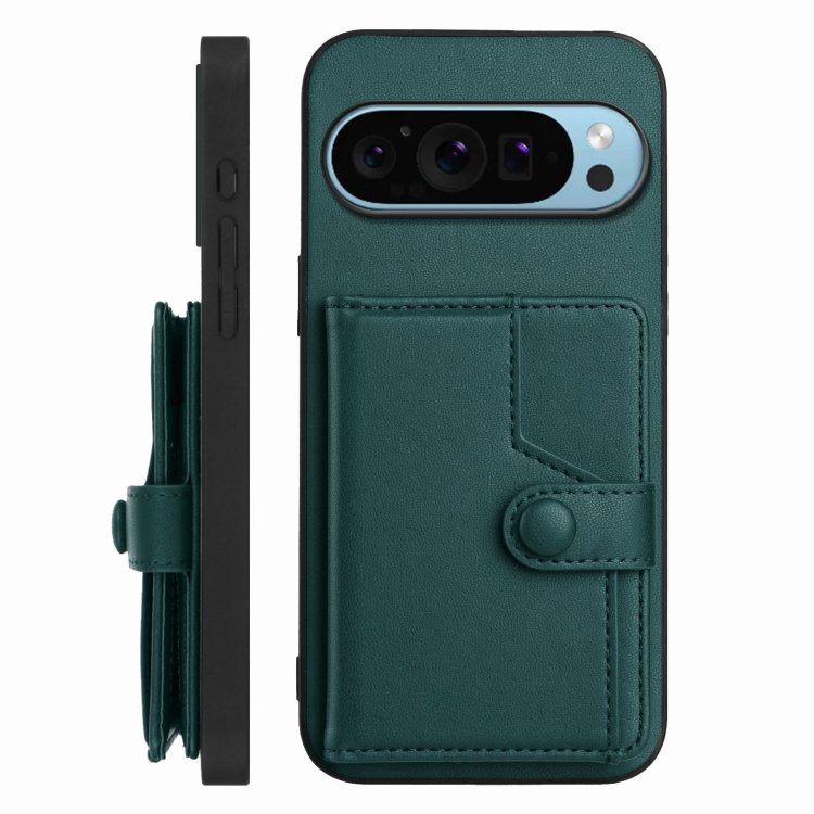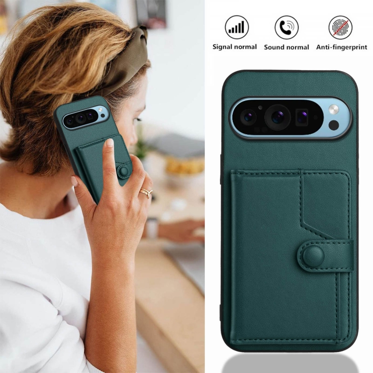 Funda para Teléfono Antirrobo con Botón y Tarjetero Rfid para Google Pixel 9 Pro (Verde)