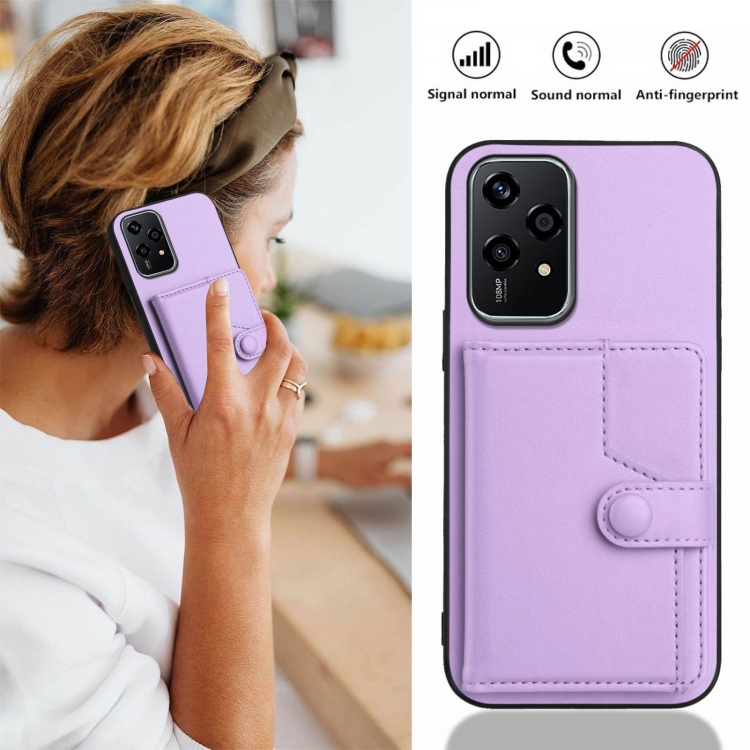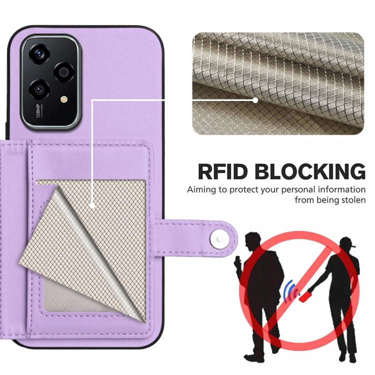 Funda Antirrobo para Honor 200 Lite 5G con Botón y Tarjetero Rfid (Morado)