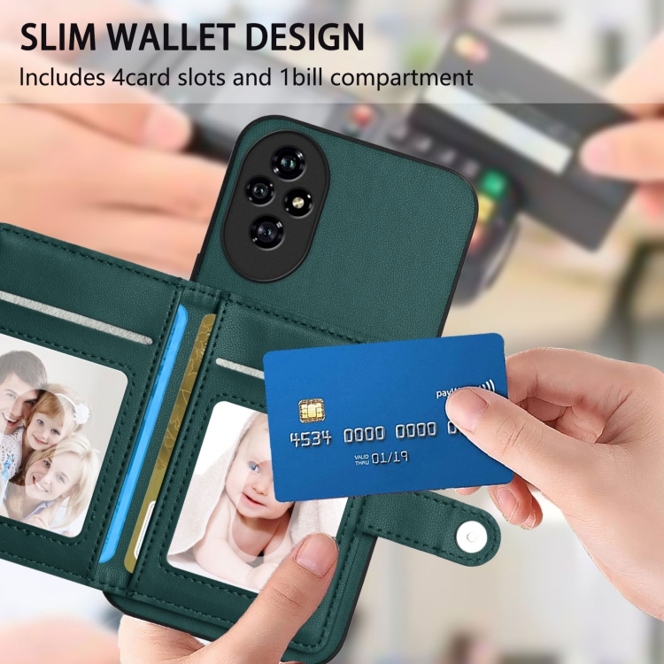 Funda Antirrobo para Honor 200 Pro con Botón y Tarjetero RFID (Verde)