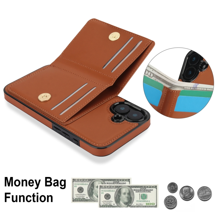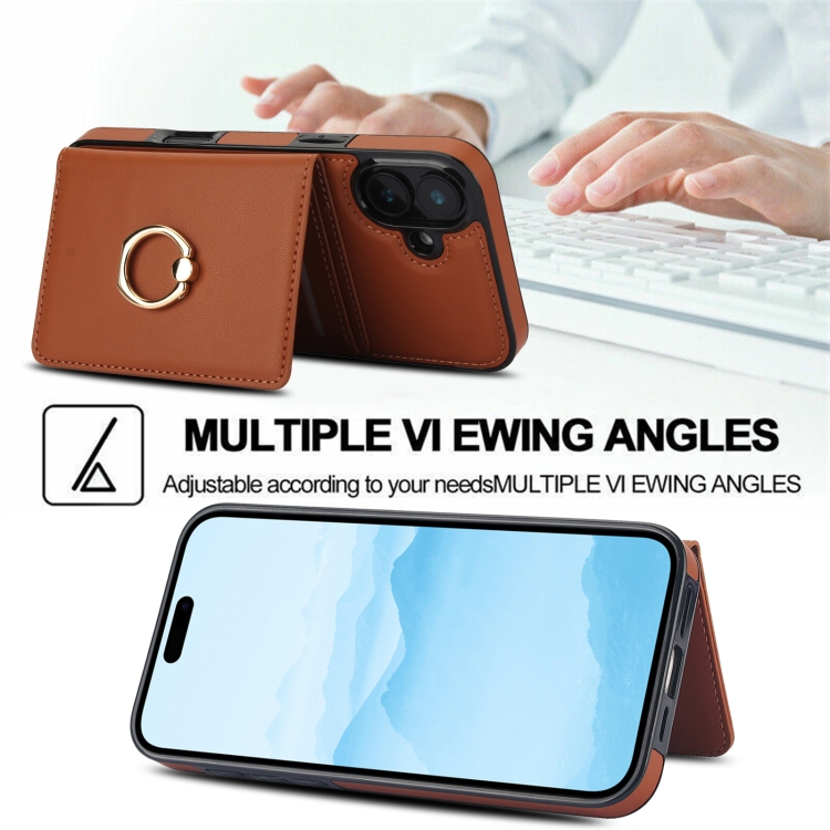 Funda para Teléfono con Anillo para Tarjeta Antirrobo Rfid para iPhone 16 (Marrón)