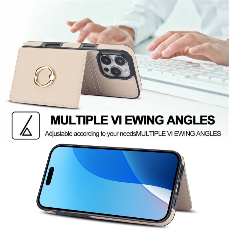 Funda para Teléfono con Anillo para Tarjeta Antirrobo Rfid iPhone 16 Pro (Blanca)