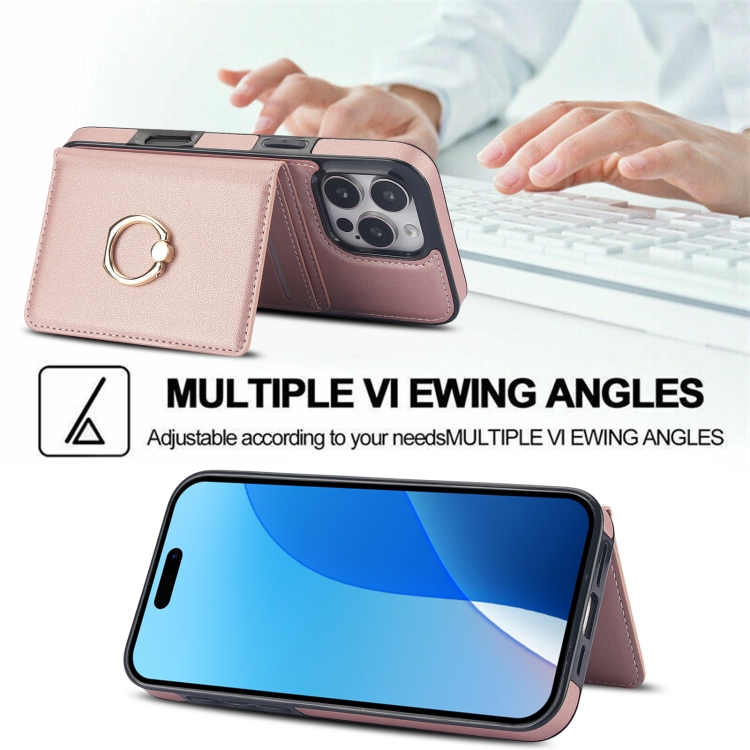 Funda para Teléfono con Anillo y Tarjeta Antirrobo Rfid para iPhone 16 Pro (Oro Rosa)