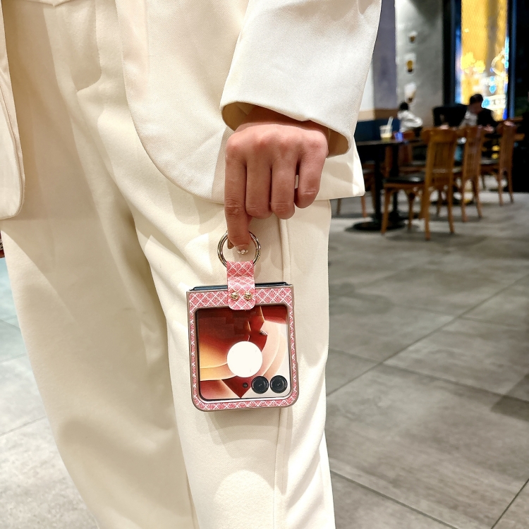 Funda para Teléfono Motorola Razr 50 con Anillo y Diseño de Rombos y Diamantes (Rosa)