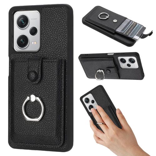 Funda para Teléfono con Anillo y Diseño de Textura de Lichi para Redmi Note 12 Pro 5G (Negra)