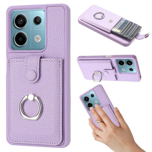 Funda para Teléfono con Anillo y Diseño de Textura de Lichi para Redmi Note 13 Pro 5G (Morado)
