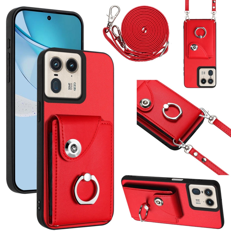 Funda para Teléfono Motorola Edge 50 Ultra Versión UE con Aro, Tarjetero y Cordón Largo (Rojo)