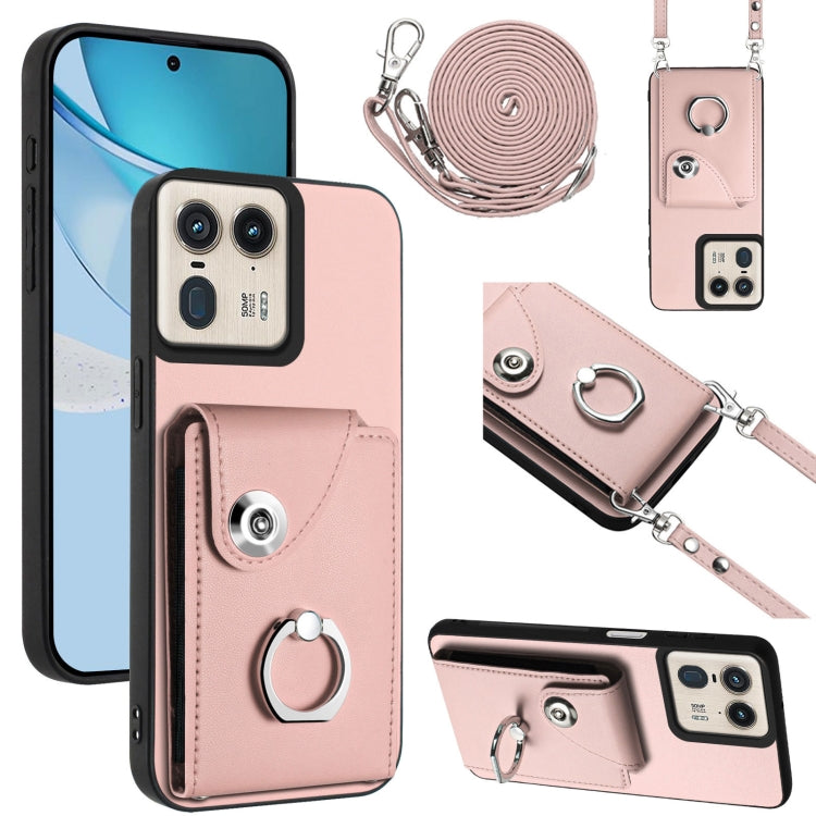Funda para Teléfono Motorola Edge 50 Ultra Versión UE con Aro, Tarjetero y Cordón Largo (Rosa)