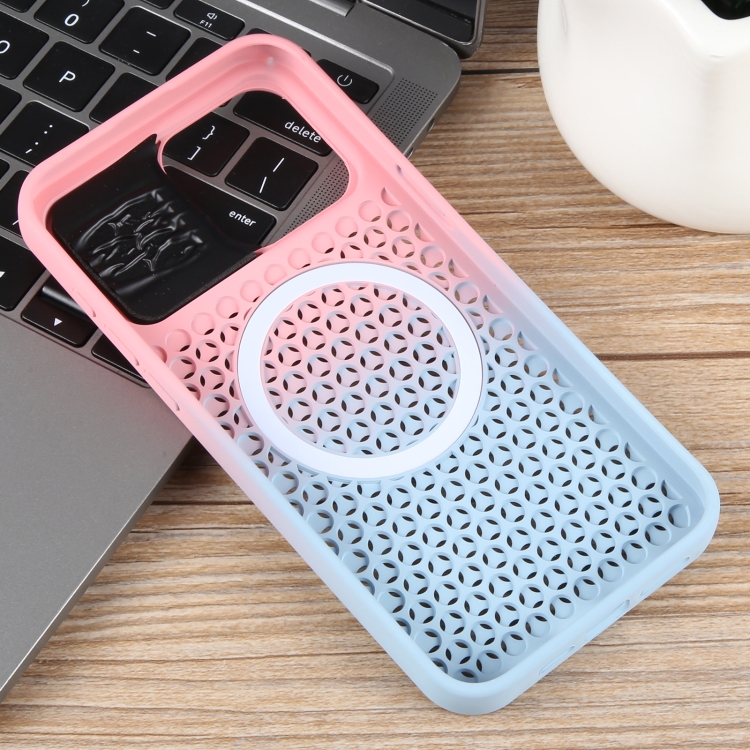 Funda para Teléfono iPhone 14 Pro Max Magsafe Aromaterapia Panal (Rosa y Azul)
