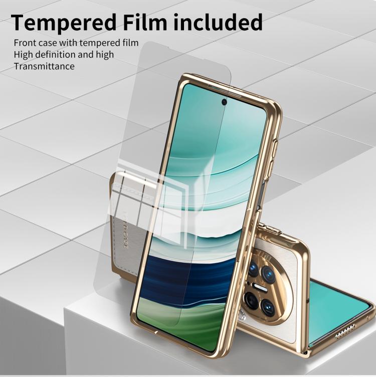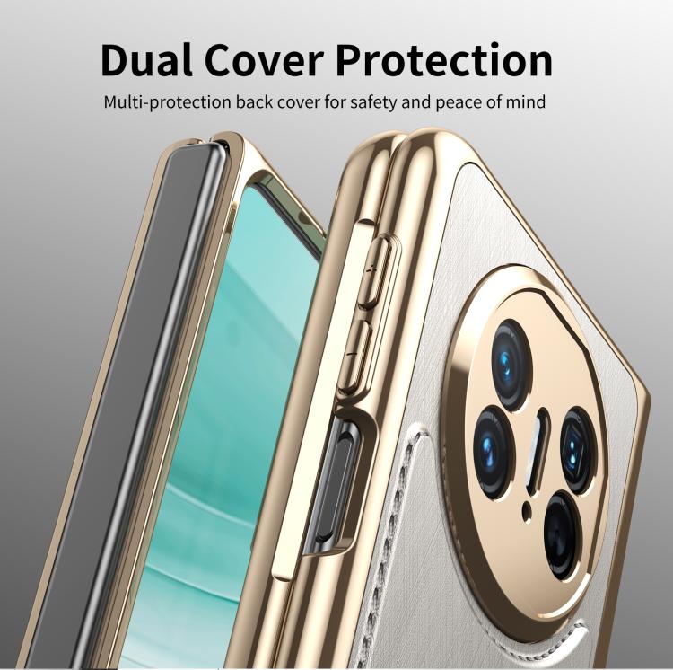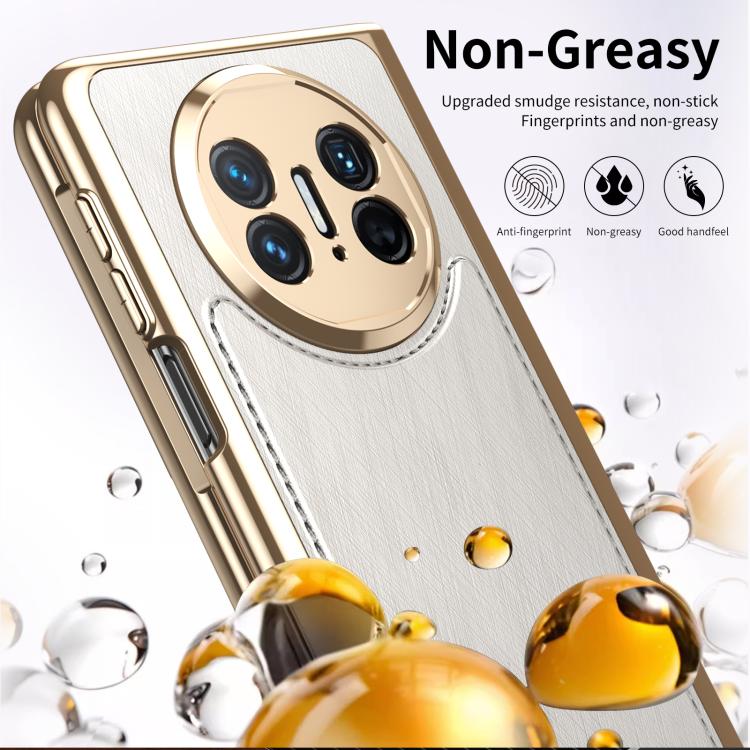 Funda para Teléfono Huawei Mate X3 con Baño de Brocado Plateado y Alambre Dorado (Blanca)
