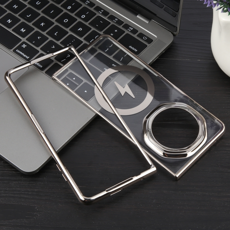 Funda para Teléfono con Carcasa de PC Galvanizada Brillante Magsafe 6D para Honor Magic V3 (Gris Titanio)
