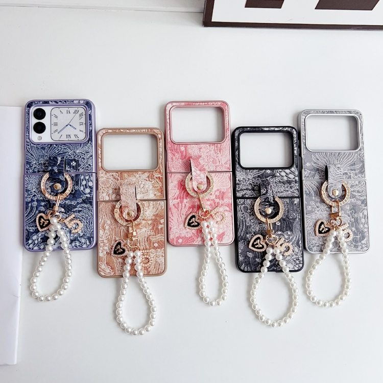Funda para Teléfono Huawei Nova Flip con Cobertura Total Bordado Cadena y Anillo (Azul)