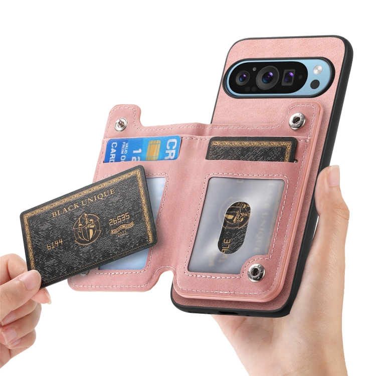 Funda para Teléfono Google Pixel 8 con Cremallera Magsafe, Tarjetero y Cartera (Rosa)
