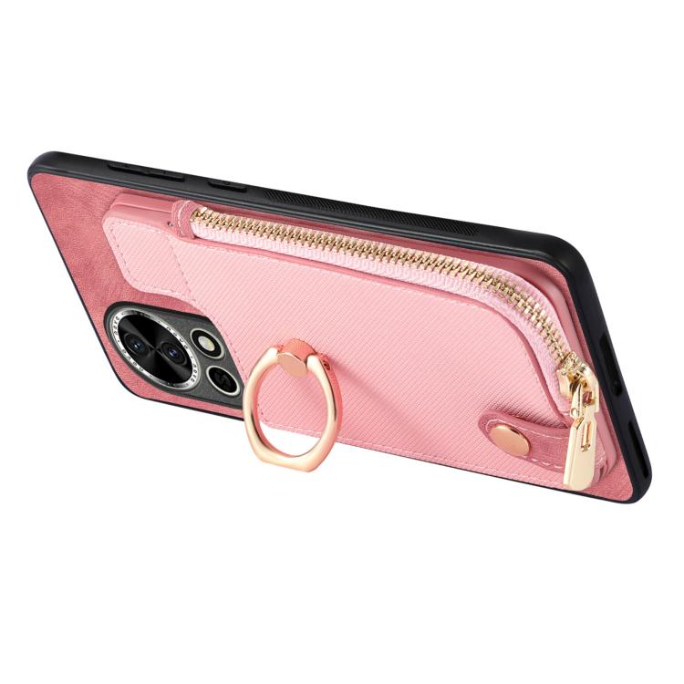 Funda para Teléfono Huawei Nova 8 con Cremallera Vertical y Anillo de Cuero Cruzado (Rosa)
