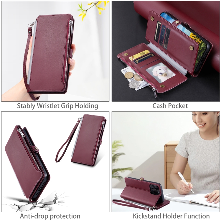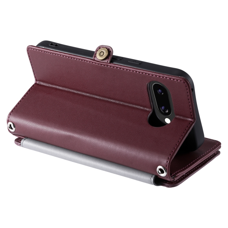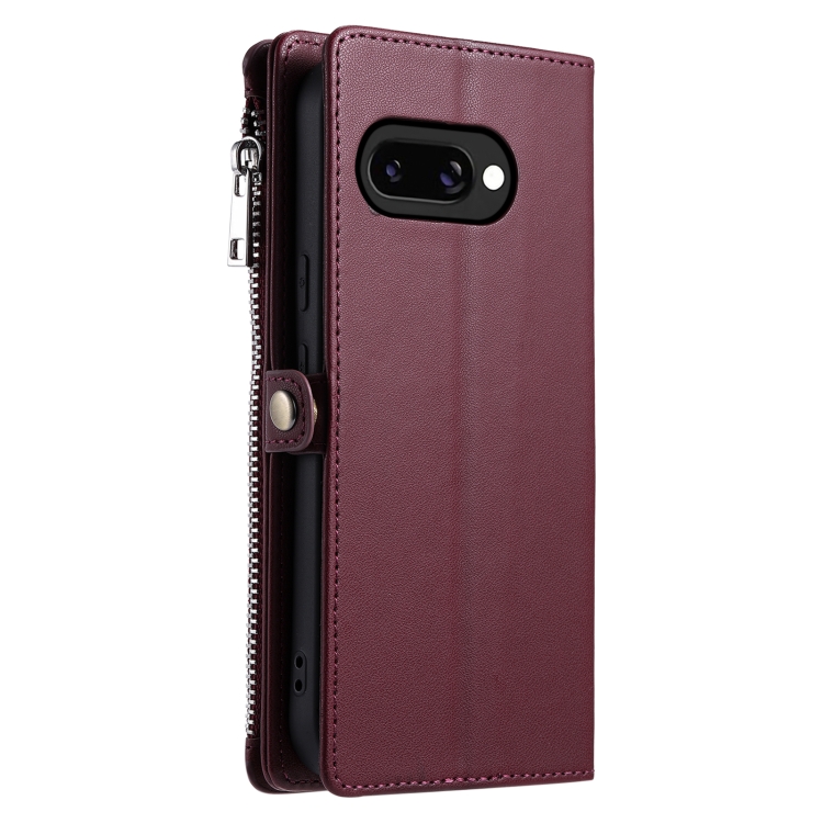 Funda de Cuero con Cremallera y Ranura para Múltiples Tarjetas para Google Pixel 9A (Rojo Vino)