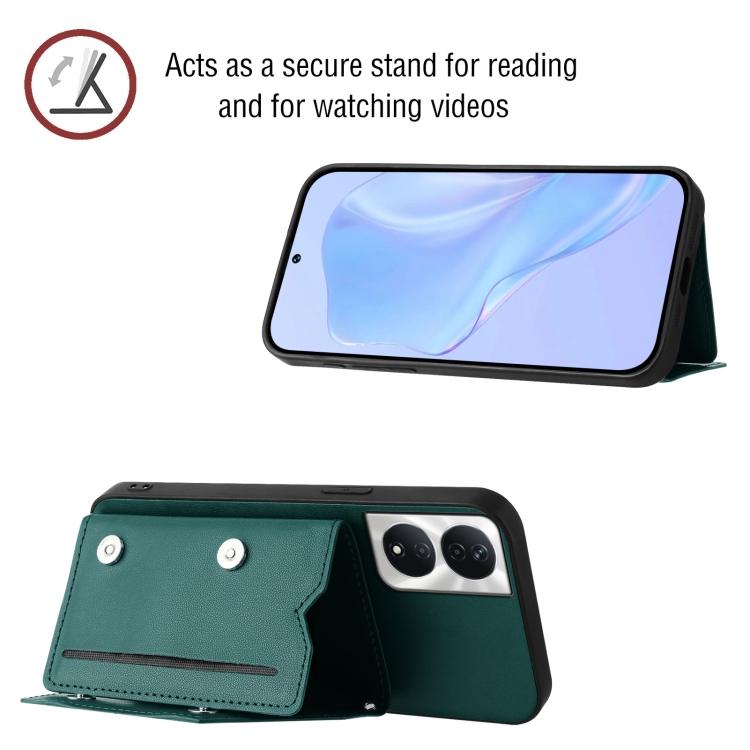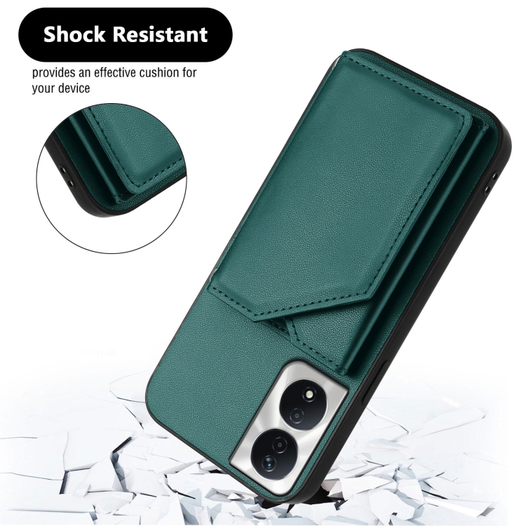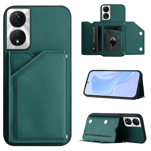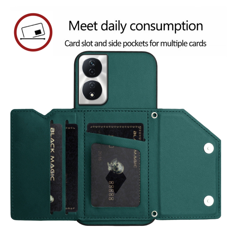 Funda para Honor X7B Play 8T con 4 Ranuras para Tarjetas y Correa para Muñeca (Verde)