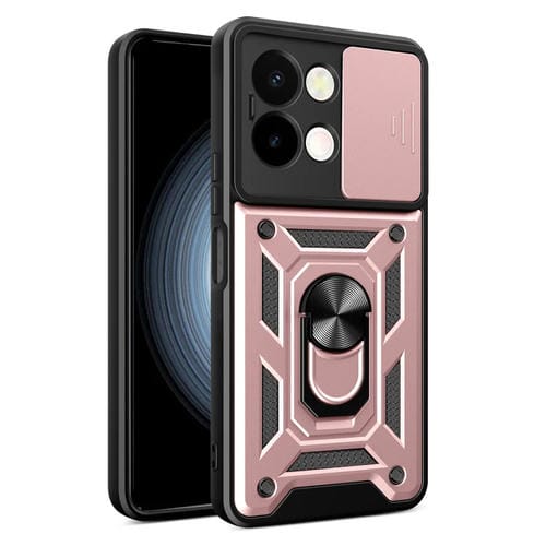 Funda para Teléfono con Diseño de Cámara Deslizante de TPU y PC para Vivo Y28 4G (Oro Rosa)