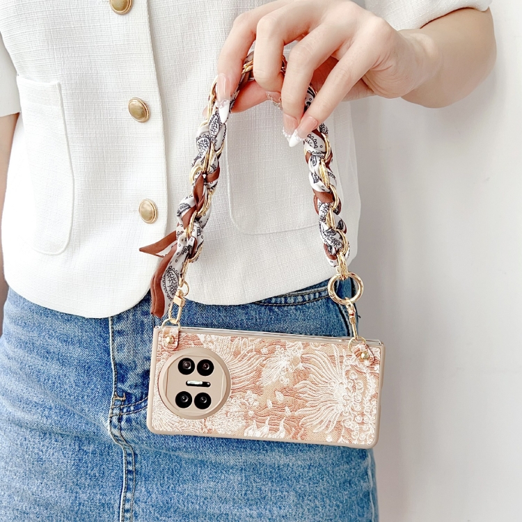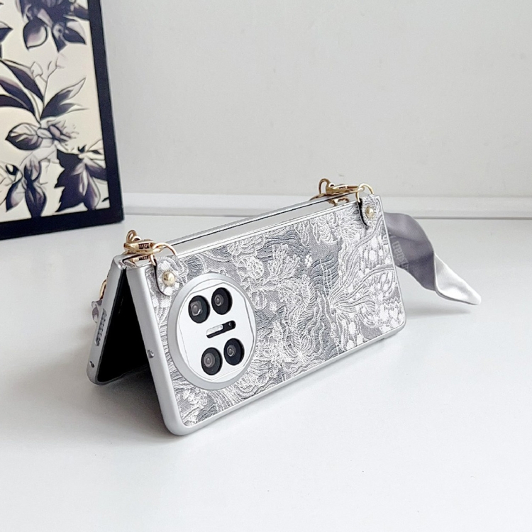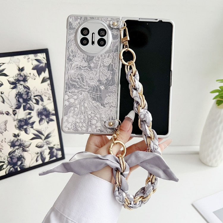 Funda para Teléfono Huawei Mate X3/X5 Bordado Diy Cobertura Total con Bufanda y Pulsera (Gris)
