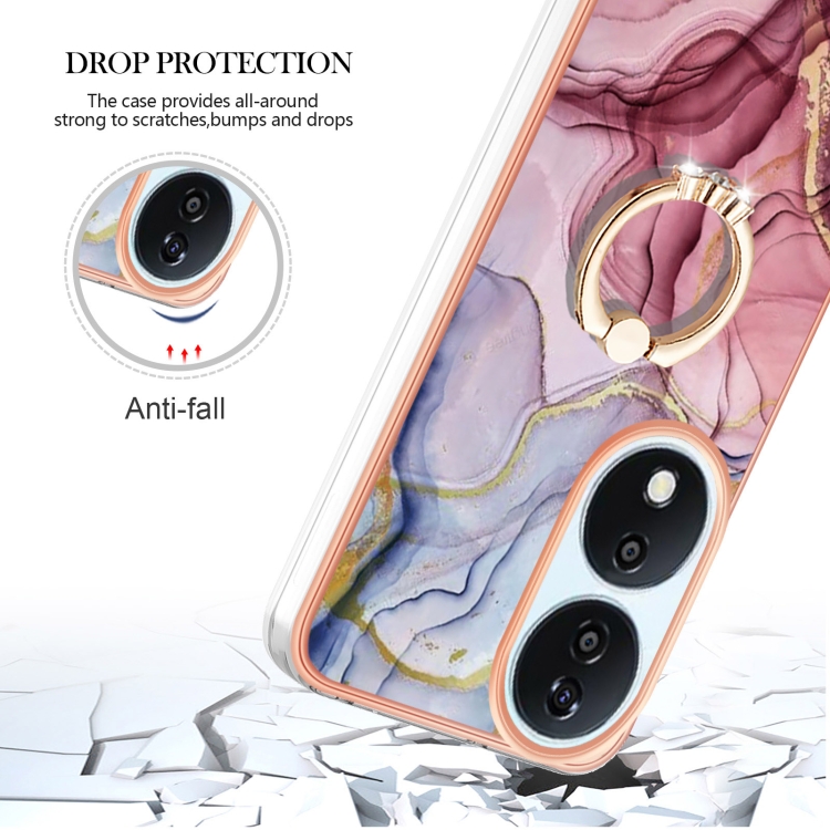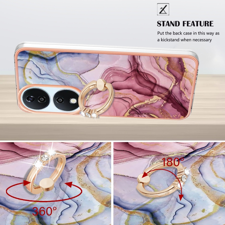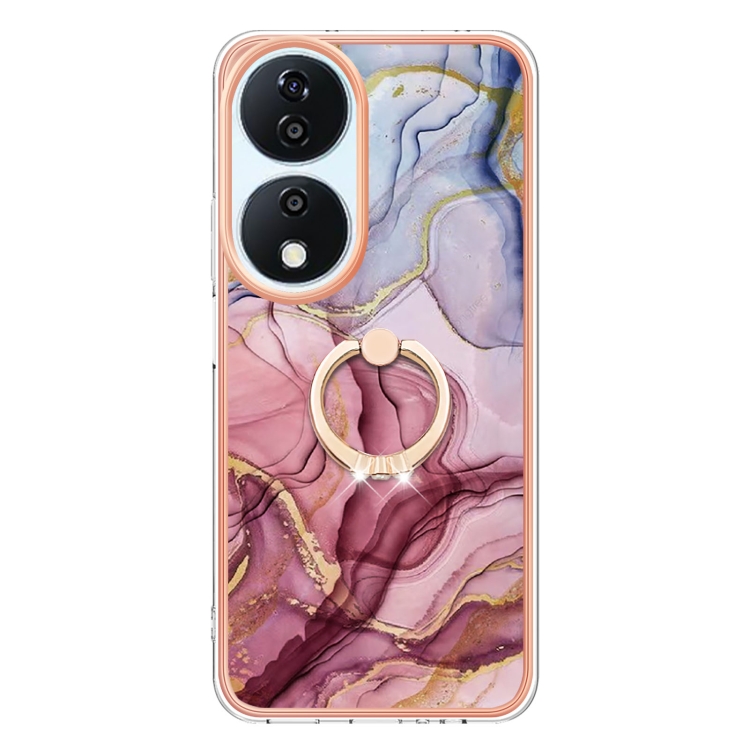 Funda para Teléfono Honor X7B 4G/5G con IMD Doble Cara, Galvanoplastia Mármol y Anillo (Rojo Rosa)