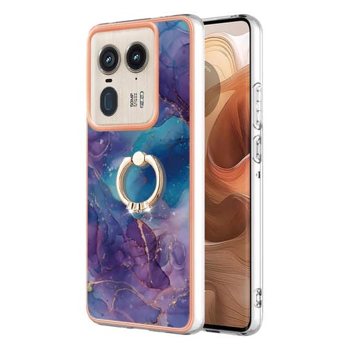 Funda para Teléfono Motorola Edge 50 Ultra con Imd Doble Cara, Galvanoplastia Mármol y Anillo (Púrpura)