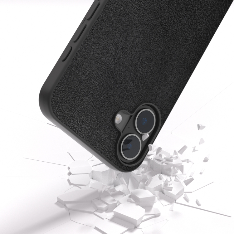 Funda para teléfono iPhone 16 Plus Cuero sintético Marco negro Cobertura total (Negro)