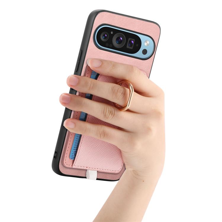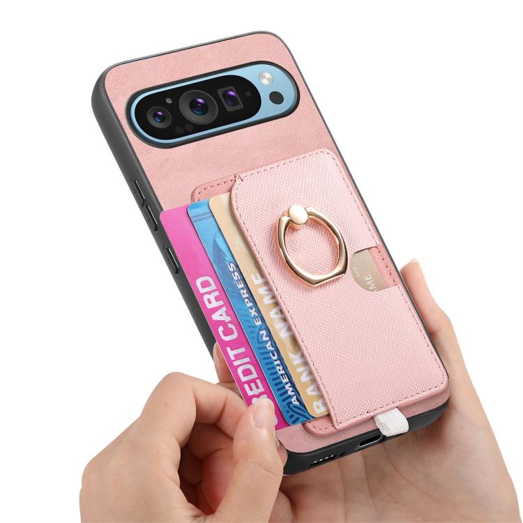 Funda para Google Pixel 8A con Ranuras para Tarjetas y Anillo Lateral de Cuero (Rosa)