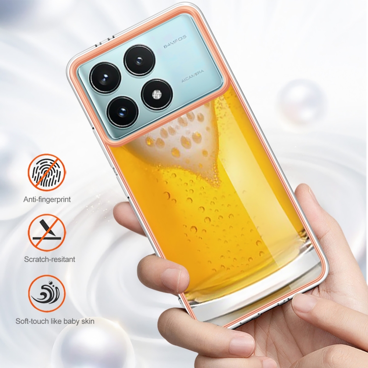 Funda para Teléfono con Revestimiento de Mármol Galvanizado de Doble Cara Imd para Xiaomi Poco F6 Pro 5G (Cerveza de Barril)
