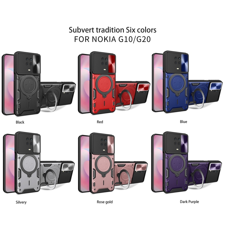 Funda para Teléfono Nokia G10/G20 con Soporte Magnético Deslizante y Textura de Cd (Rojo)