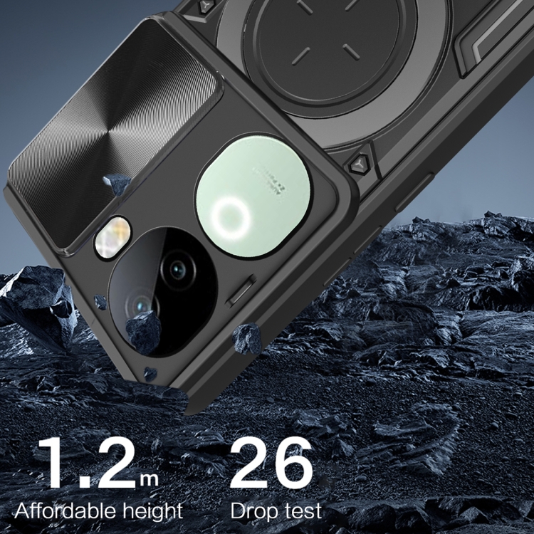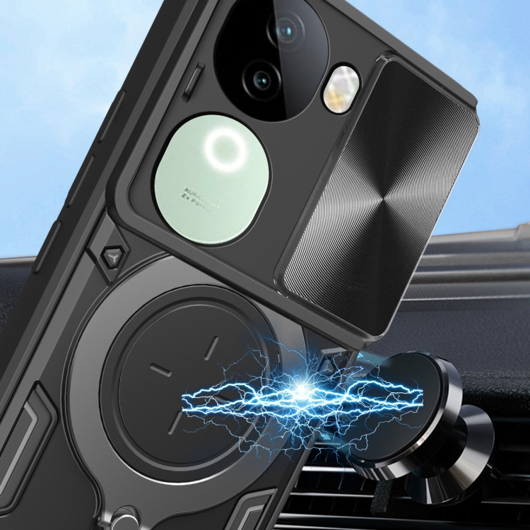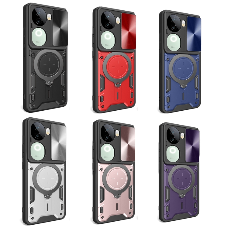 Funda para Teléfono con Soporte Magnético Deslizante con Textura de Cd para Vivo Iqoo Z9S 5G (Rosa)