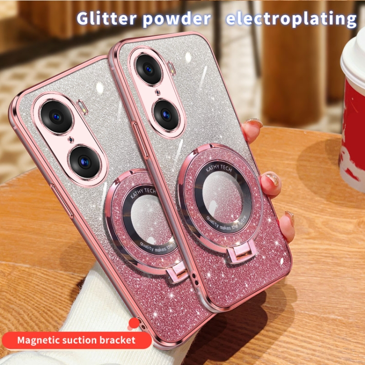 Funda para Teléfono Honor 60 Pro TPU con Soporte Redondo y Purpurina Degradada (Negro)