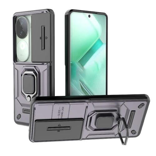 Funda Protectora de TPU + PC con Soporte para Vivo Iqoo Z9S 5G, con Diseño Deslizante y Antigolpes (Morado)