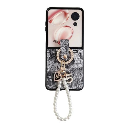 • 1x Funda para Teléfono Honor Magic V con Tapa Bordada, Cobertura Total, Cadena y Anillo (Negro)