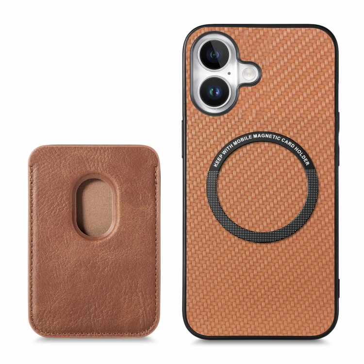 Funda para teléfono Apple iPhone 16 Plus con tarjetero fibra de carbono y Magsafe (Marrón)
